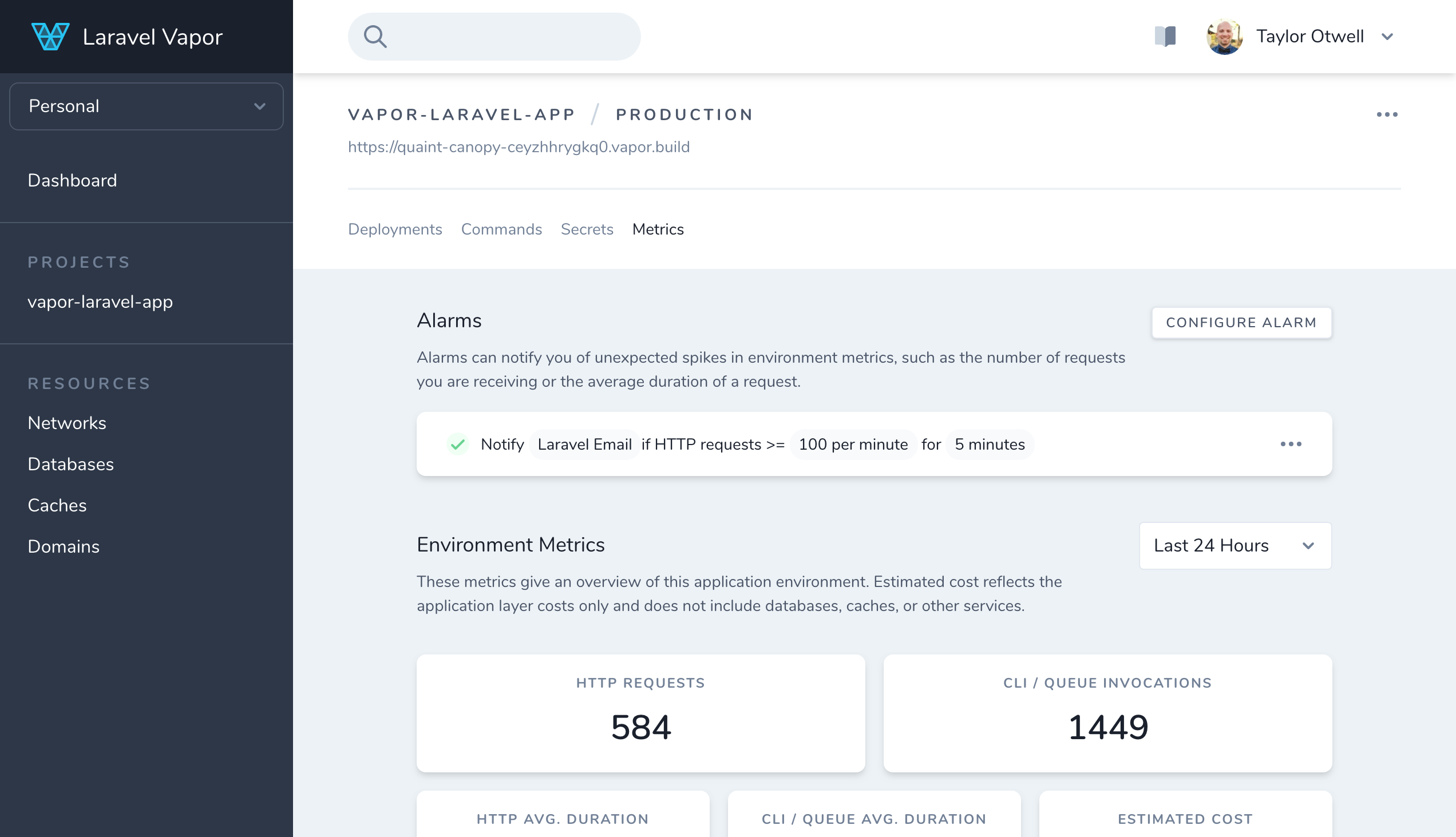Each Vapor project can have multiple unique environments. To help you preview your application, each environment receives its own Vapor vanity URL.